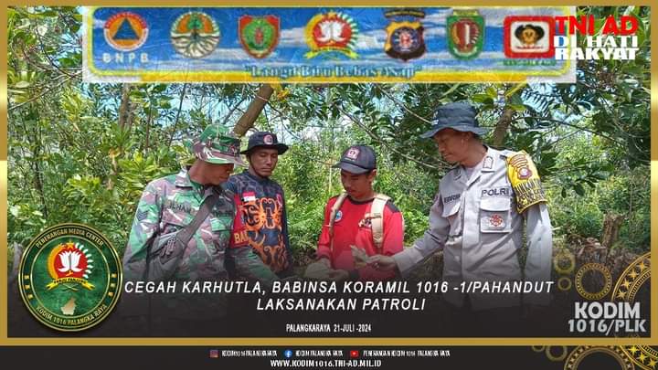 “Hari ini kami bersama satgas serta Manggala Agni Daops I Palangka Raya melaksanakan patroli untuk mencegah kebakaran hutan dan lahan,” kata Babinsa.