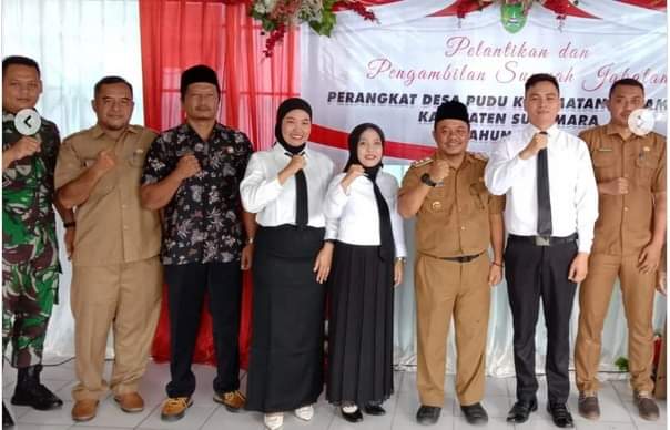 “Saya sangat mengapresiasi semangat dan komitmen dari perangkat desa yang baru dilantik dalam membantu proses membangun Desa Pudu hingga menjadi Desa yang produktif,” tuturnya.