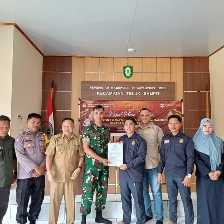 Kotawaringin Timur. DOMAINRAKYAT.com// Bintara Pembina Desa (Babinsa) Koramil 1015-01/Mentaya Hilir Selatan(MHS) Kopda Alfin menghadiri kegiatan Rapat Pleno Terbuka Rekapitulasi Daftar Pemilih Hasil Pemutakhiran ( DPHP ) Pemilihan Gubernur dan Wakil Gubernur Kalimantan Tengah serta Bupati dan Wakil Bupati Kotawaringin Timur Tahun 2024 yang bertempat di Aula Kec.Teluk Sampit, Selasa (06/08/2024).