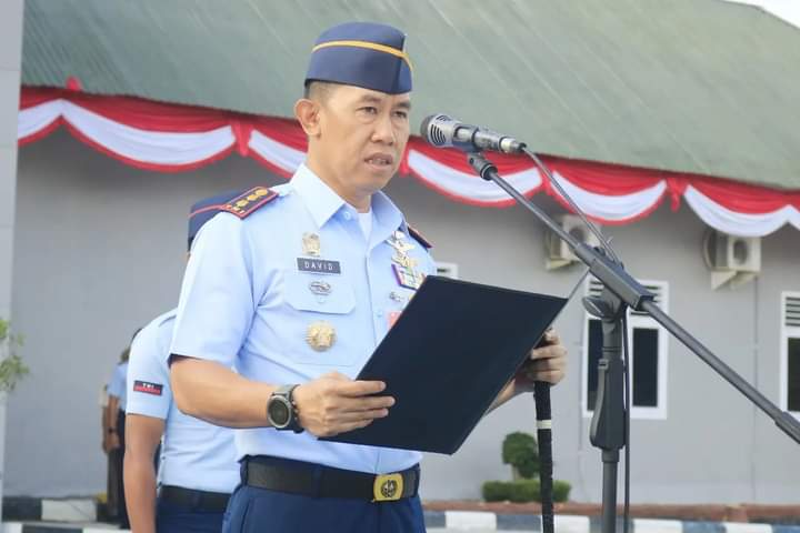 Kalteng. DOMAINRAKYAT.com// TNI AU. Lanud Iskandar menggelar upacara bendera rutin mingguan, bertindak selaku Inspektur upacara, Komandan Lanud Iskandar Letkol Pnb David Moningka, S.A.P., M.Han yang diikuti seluruh Para Kadis, Kaintel, Dansatpom, para Perwira, Bintara, Tamtama dan PNS bertempat di lapangan Apel Mako Lanud Iskandar, Senin (5/8/2024).