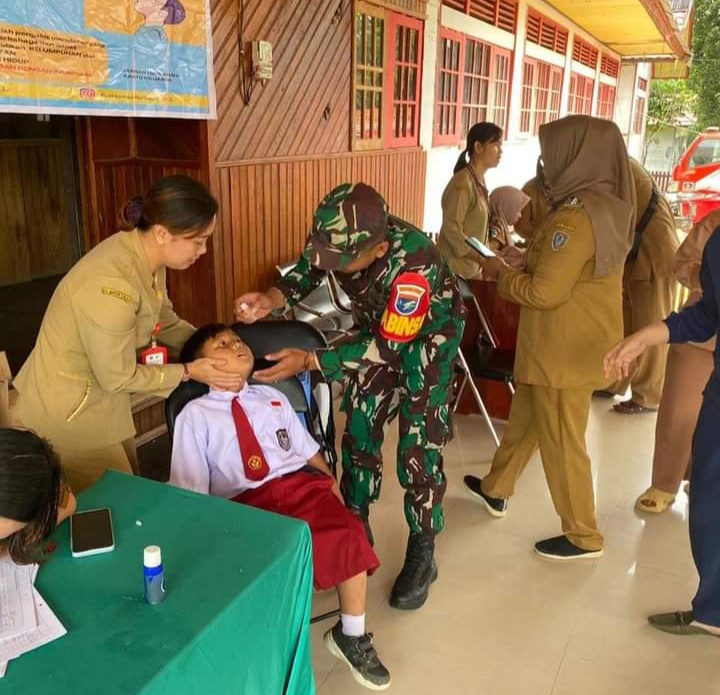 Seruyan. DOMAINRAKYAT.com// Babinsa Koramil 1015-12/Seruyan Tengah Praka Risky turut ambil bagian mendorong sukseskan Pemberian Imunisasi Polio yang bertempat di Kantor Kecamatan Seruyan Tengah, Kab, Seruyan, selasa (13/08/2024).