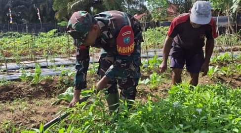 Anggota Koramil bersama dengan warga sekitar memanfaatkan lahan kosong untuk dijadikan lahan produktif dengan membuat kebun pertanian.