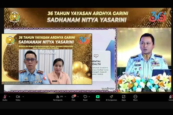 Kotawaringin Barat. DOMAINRAKYAT.com// Komandan Lanud Iskandar Letkol Pnb David Moningka, S.A.P., M.Han selaku Pembina Yayasan Ardhya Garini (Yasarini) Pengurus Cabang Lanud Iskandar didampingi Ketua Yasarini Pengurus Cabang Lanud Iskandar Ny. Candra David Moningka beserta para pengurus, perwakilan Guru TK Angkasa mengikuti Syukuran HUT Ke-36 Yasarini secara virtual, bertempat di Mako Lanud Iskandar, Pangkalan Bun, Kotawaringin Barat, Kalteng, Selasa (13/08/2024).