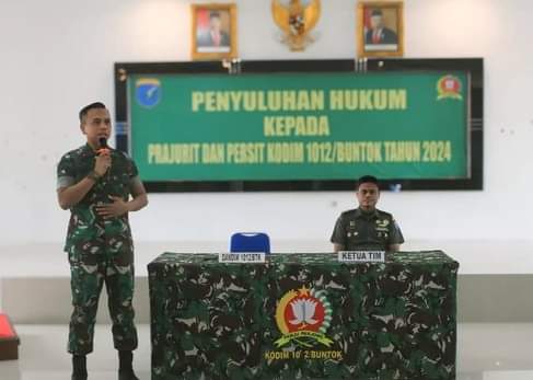 Letkol Inf Langgeng Pujut Santoso, S.E., M.Han. selaku Komandan Kodim 1012/Btk, secara resmi membuka kegiatan Penyuluhan Hukum yang diselenggarakan di Aula Makodim 1012/Btk. Dalam sambutannya, beliau menyampaikan ucapan selamat datang kepada tim penyuluh dari Kumdam XII/ Tanjungpura dan peserta penyuluhan.