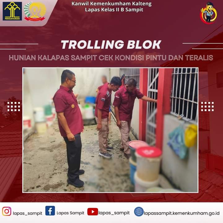 Meldy menjelaskan pelaksanaan kontrol keliling ini merupakan upaya Lapas Sampit dalam meninjau Sarana Prasarana Keamanan yang meliputi pemeriksaan kondisi pintu, teralis, dan kebersihan lingkungan blok hunian.
