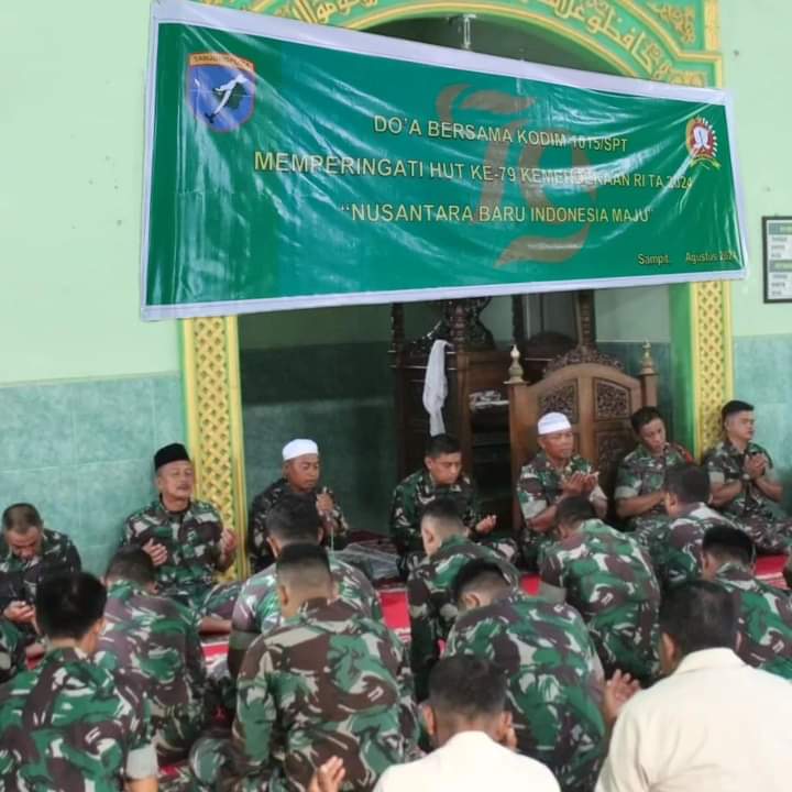 Kotawaringin Timur. DOMAINRAKYAT.com// Kodim 1015/Sampit menggelar doa bersama dalam rangka menyambut Hari Ulang Tahun (HUT) Ke-79 Kemerdekaan Indonesia, berlangsung di Masjid Asy-Sajaah Kodim 1015/ Sampit, Jum’at (16/08/2024).