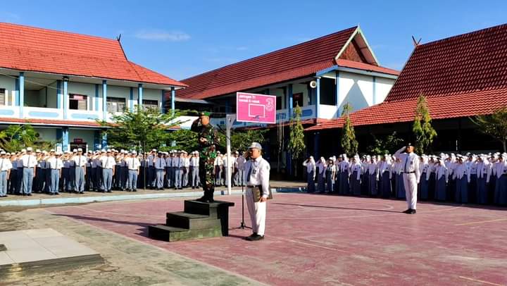 Kotawaringin Timur-DOMAINRAKYAT.com// Komandan Kodim 1015/Sampit Letkol Inf Muhammad Tandri Subrata,S.A.P.M.Han bertindak sebagai pembina upacara pada upacara bendera di halaman SMAN 1 Sampit Senin 26/08/2024.