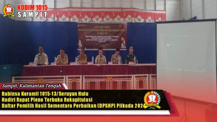 Hadir dalam rapat pleno Babinsa Koramil 1015-13/Seruyan Hulu,Camat Seruyan Hul,Sekcam Seruyan Hulu,Babinkamtibmas Polsek Seruyan Hulu,Ketua PPK Seruyan Hulu,Ketua Panwaslu Seruyan Hulu,serat Seluruh yang hadir dan seluruh anggota PPZ xan PPK.