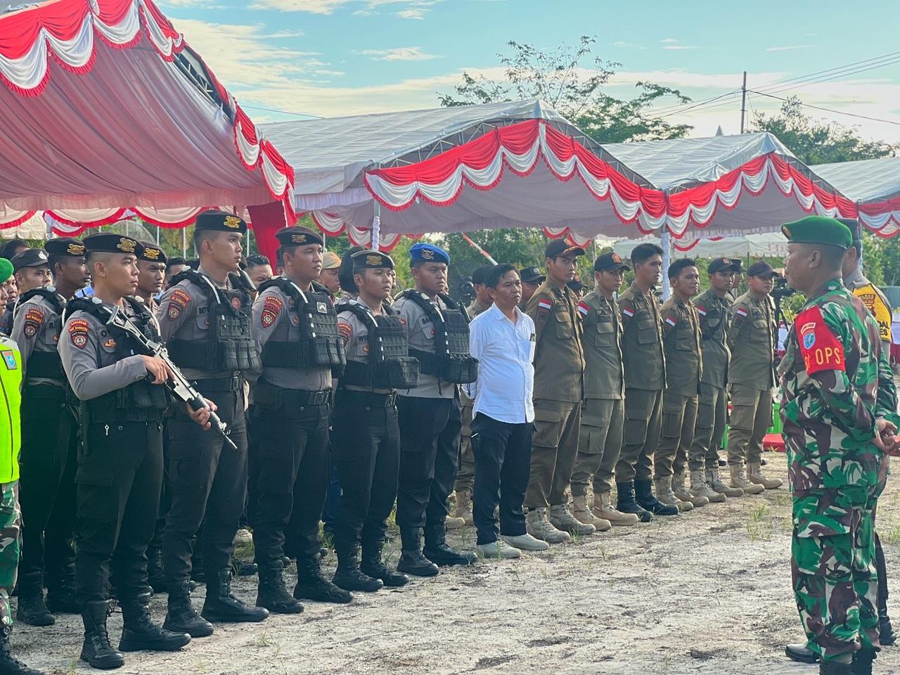 Kasongan-DOMAINRAKYAT.com// Personel gabungan TNI-Polri dan Satpol PP dikerahkan untuk mengamankan jalannya pengundian dan penetapan nomor urut pasangan calon (paslon) Bupati dan Wakil Bupati Katingan Tahun 2024.
