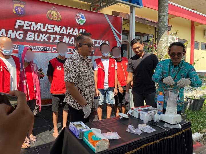 “Ada 3 perkara berbeda yang barang buktinya dimusnahkan pada hari ini, barang bukti yang disita dari tersangka MI dan MAA senilai 80,34 Gr, kemudian barang bukti yang disita dari tersangka FIB dan LH senilai 46,30 Gr dan yang terakhir barang bukti Narkotika yang disita dari tersangka HH dan NI senilai 22,45 Gr. Jumlah total Narkotika jenis Sabi – Sabu yang dimusnahkan pada hari ini sebanyak 149,09 Gram”, jelas Kasat Resnarkoba.