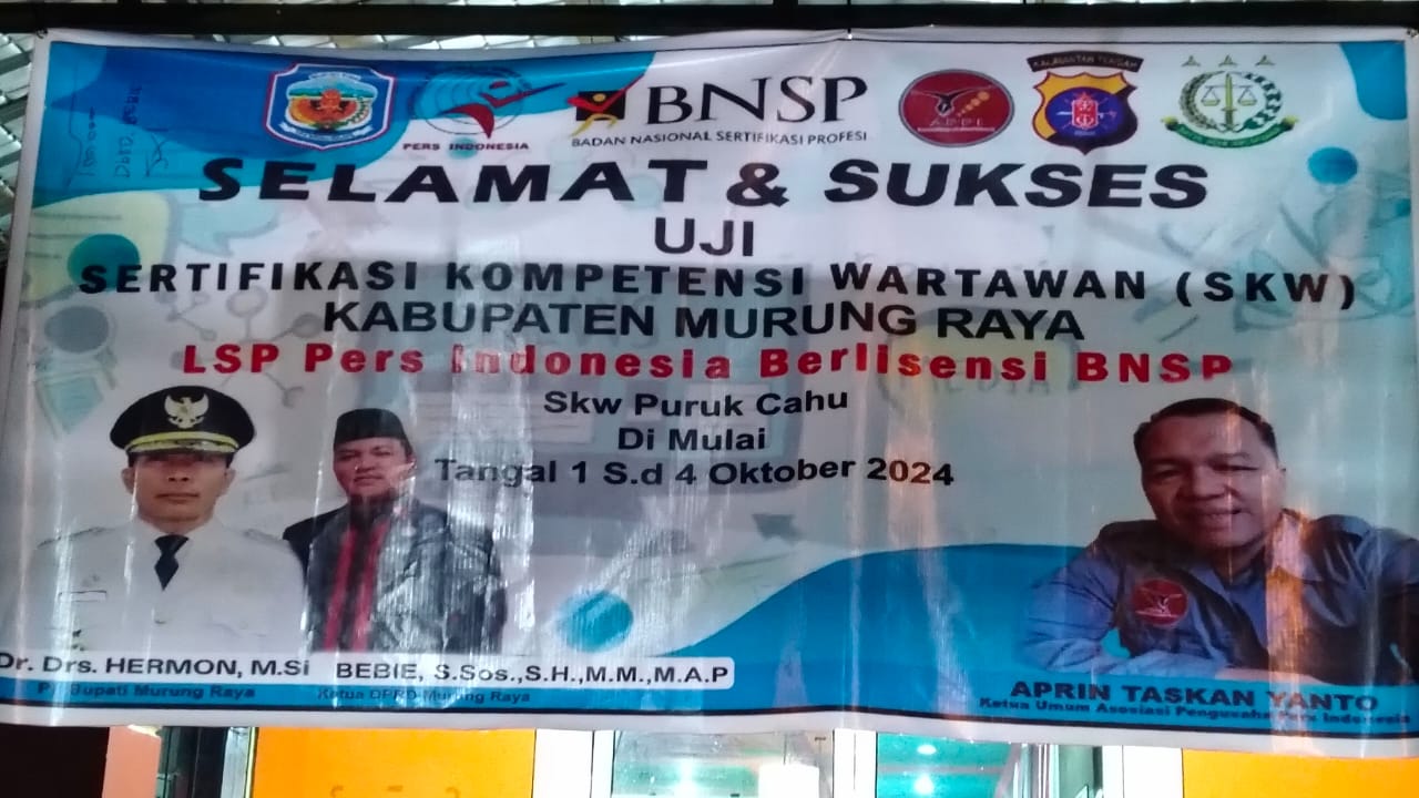 Murung Raya-DOMAINRAKYAT.com// Dengan dukungan penuh dari Pemerintah Daerah dan DPRD Kabupaten Murung Raya, kegiatan Uji Sertifikasi Kompetensi Wartawan berhasil dilaksanakan dengan sukses di Hotel Family, Puruk Cahu, pada hari selasa, 1 Oktober 2024. Acara ini diikuti oleh 32 peserta dari berbagai media, menandai langkah penting dalam peningkatan kualitas dan profesionalisme jurnalisme di wilayah Murung Raya.