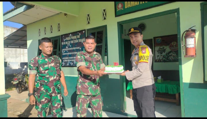 Kegiatan yang berlangsung pada Sabtu, 05 Oktober 2024, ini diawali dengan kunjungan Kapolsek Cempaga Hulu, Iptu Adel Muhammad G.H., S.Tr.k, beserta anggota Polsek ke Posramil Pundu. Dalam kunjungan tersebut, Kapolsek secara langsung menyampaikan ucapan selamat atas peringatan HUT TNI yang ke-79 kepada Danposramil dan seluruh anggota Posramil Pundu. Ucapan ini disertai dengan harapan agar sinergi TNI dan Polri terus terjaga dan semakin kuat dalam mengamankan wilayah serta melayani masyarakat.