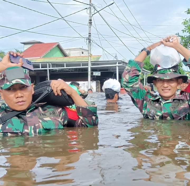 Murung Raya-DOMAINRAKYAT.com// Turut ambil bagian dalam aksi penanganan bencana, Kodim 1013/Muara Teweh salurkan bantuan makanan untuk masyarakat terdampak banjir di Kota Puruk Cahu, Kabupaten Murung Raya, Kalimantan Tengah. Makanan tersebut sebelumnya diolah di dapur umum oleh Ibu-ibu Persit Kodim 1013/Mtw dibantu oleh para relawan.