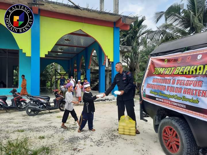 Pangkalan Bun-DOMAINRAKYAT.com// Personel Kompi 3 dan 4 Batalyon B Pelopor Satuan Brimob Polda Kalimantan Tengah (Kalteng) kembali menggelar bakti sosial dalam rangka jumat berkah dengan membagikan puluhan kotak makanan secara gratis kepada masyarakat yang telah selesai melaksanakan salat Jumat di Masjid Al- Amin, Desa Batu Balaman, Kec. Kumai, Kab. Kobar, Jumat (25/10/2024).
