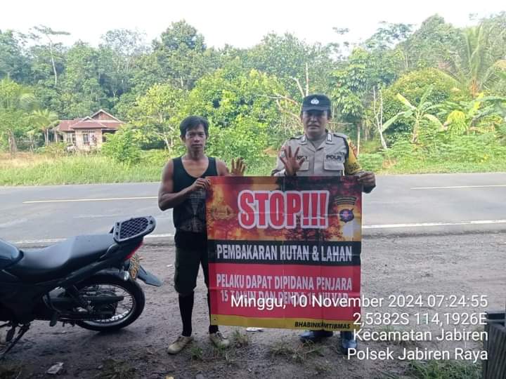 Polres Pulang Pisau–DOMAINRAKYAT.com// Upaya untuk memberikan pemahaman pencegahan dan dampak dari Kebakaran Hutan dan Lahan (Karhutla) terus menerus digelorakan personel Polsek Jabiren Raya. Hal itu dilakukan biarpun situasi saat ini di wilayah Kabupaten Pulang Pisau, Minggu (10/11/2024).