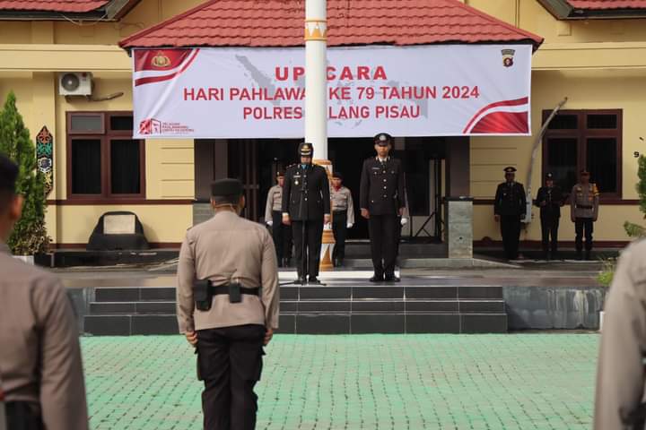 Bertindak Selaku Inspektur Upacara Wakapolres Pulang Pisau Kompol Hj. Susilowati, S.E, M.M., mewakili Kapolres, upacara berlangsung khidmat, dengan tema “Teladani Pahlawanmu, Cintai Negerimu”.