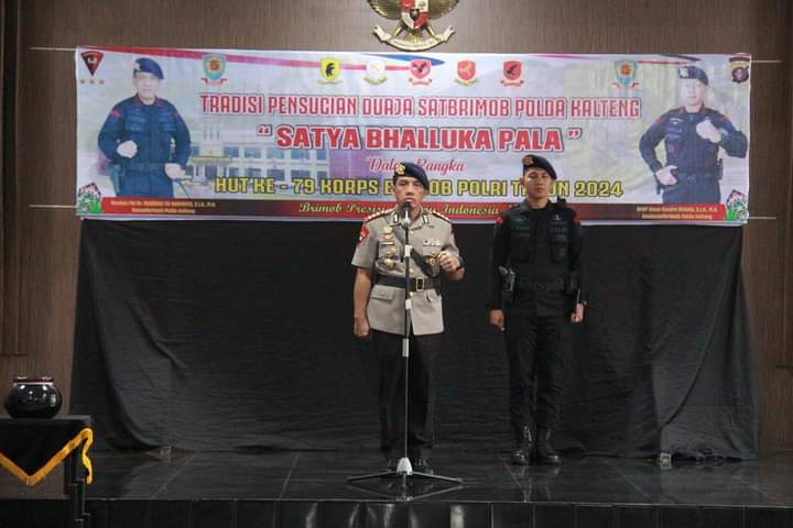 Palangka Raya-DOMAINRAKYAT.com// Satuan Brimob (Satbrimob) Polda Kalteng melaksanakan pensucian Duaja Satbrimob Polda Kalteng Satya Bhalluka Pala di Aula Pratisara Wirya, Jl.Tjilim Riwut Km.32, Kec. Banturung, Kota Palangka Raya, Selasa (12/11/2024).