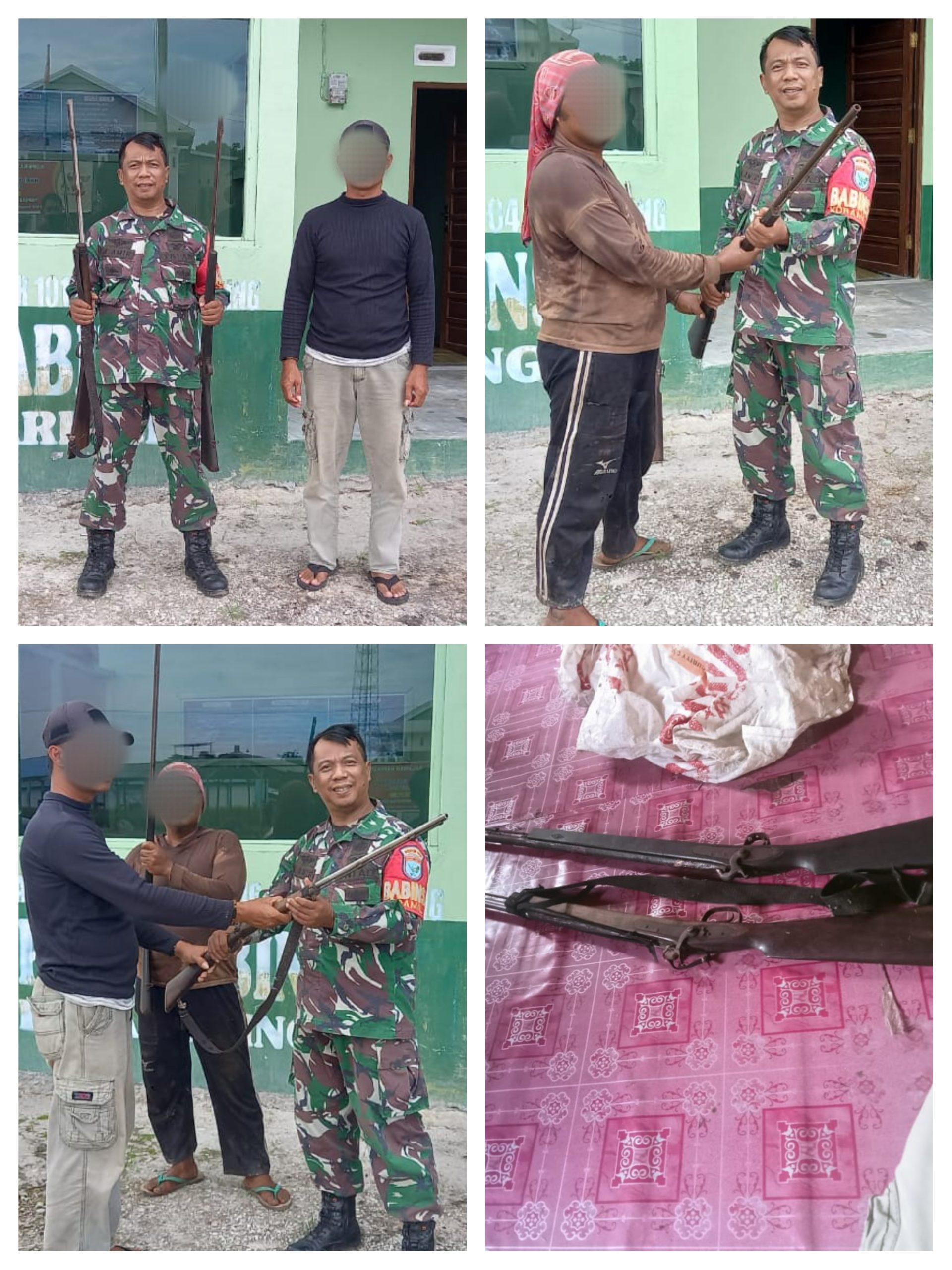 Hal tersebut, telah dilaksanakan oleh Sertu M. Amir Babinsa 1016-4/Manuhing yang telah menerima 2 pucuk senjata api rakitan Laras panjang dari masyarakat setempat.