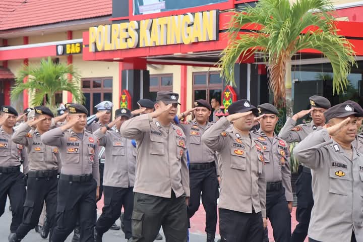 KATINGAN –DOMAINRAKYAT.com// Polres Katingan melaksanakan latihan PBB (Peraturan Baris-Berbaris) setelah pelaksanaan Apel pagi di Lapangan Apel Polres Katingan, Selasa (10/12/2024) pagi.