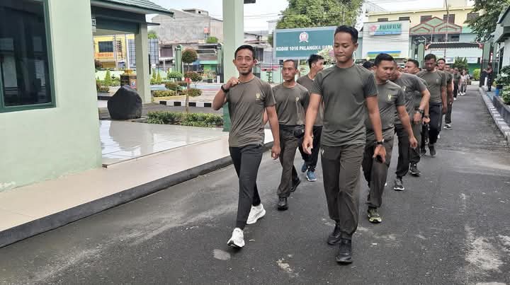 Palangka Raya– DOMAINRAKYAT.com// Anggota Kodim 1016/Palangka Raya melaksanakan Apel Pagi, Senam di Halaman Makodim 1016/Palangka Raya Jl. A. Yani No.80,Kelurahan Pahandut, Kecamatan Pahandut,Kota Palangka Raya dan dilanjutkan Olahraga lari gembira Seputaran asrama Zibang, Jumat (03/01/2025).