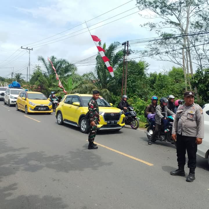 Personel Kodim 1011/Klk tidak hanya bertugas menjaga keamanan dan kelancaran selama perjananan, juga aktif memberikan pesan-pesan kamtibmas kepada masyarakat.