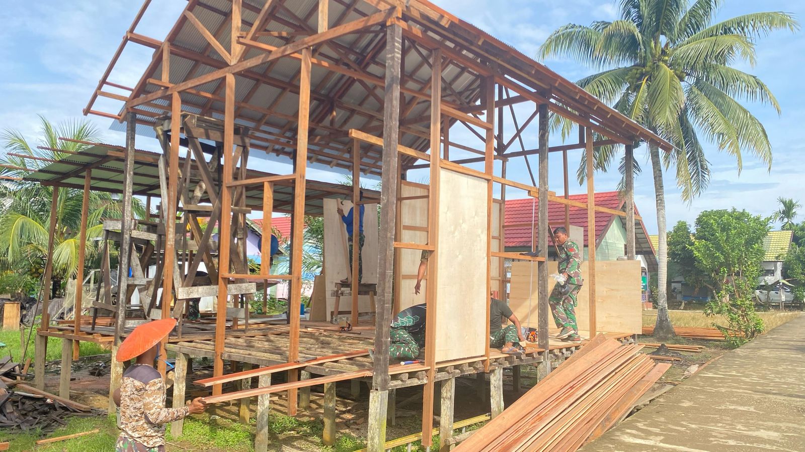 Koptu Suwono mengatakan, dirinya bersama personel Satgas TMMD sedang bersama-sama, bahu membahu memperbaiki rumah warga yang rusak.