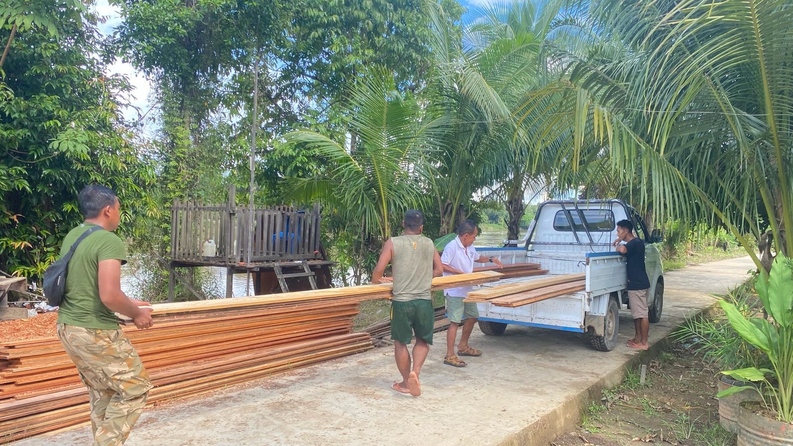 Serda Horidonang yang tergabung dalam satgas TMMD Reg ke-123 Kodim 1019/Ktg, bersama rekan rekannya mengatakan, hari ini satgas TMMD bersama warg sedang menyiapkan kayu yang akan di gunakan untuk perehaban RTLH milik Bpk. Ardianto.