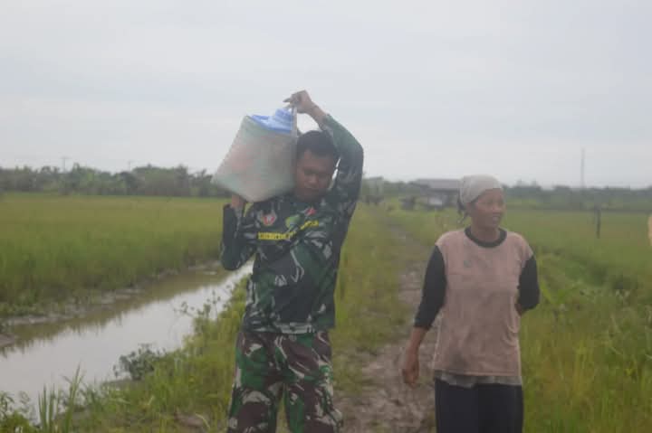 Sukamara– DOMAINRAKYAT.com// Bermacam kegiatan yang dilakukan personil satgas TMMD Reguler ke-123 Kodim 1014/Pbn untuk membantu masyarakat sekitar lokasi pelaksanaan kegiatan TMMD, seperti yang dilakukan salah satu anggota Satgas TMMD Pratu Doni Mukhlis tidak hanya membantu pembangunan fisik saja akan tetapi beberapa personil Satgas membantu membawakan barang salah satu warga yang pulang dari sawah, (02/03/2025).