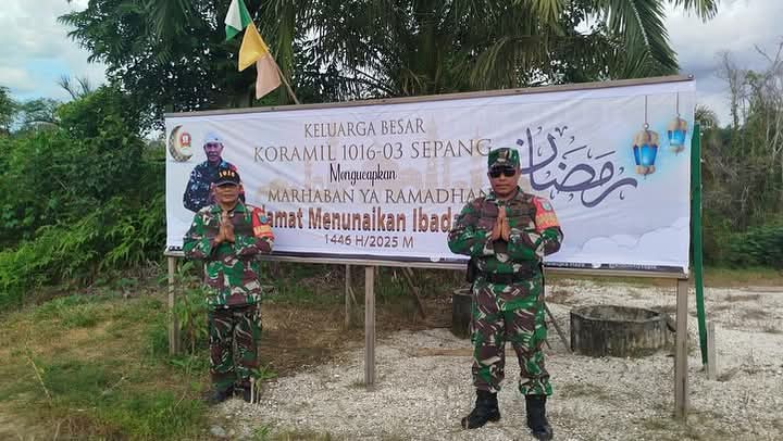 Gunung Mas– DOMAINRAKYAT.com// Koramil 1016-03/Sepang Kodim 1016/Plk melaksanakan pemasangan spanduk ucapan selamat Menunaikan Ibadah Puasa di bulan Suci Ramadhan 1446 Hijriah di wilayah Kecamatan Mihing Raya, Kabupaten Gunung Mas.