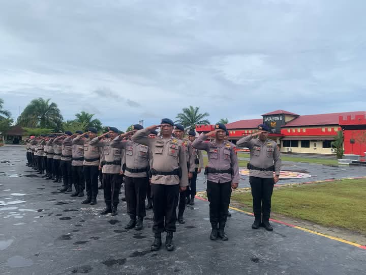 Sampit– DOMAINRAKYAT.com// Batalyon B Pelopor Brimob Kalimantan Tengah menggelar latihan Peraturan Baris-Berbaris (PBB) dalam upaya meningkatkan disiplin dan keterampilan personel, di Lapangan Roda Kompas, Mako Batalyon B Pelopor, Jalan Jenderal Sudirman Km. 20, Kecamatan Mentawa Baru Ketapang, Kabupaten Kotawaringin Timur, Senin (10/03/2025).