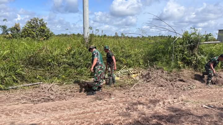 Sukamara– DOMAINRAKYAT.com// Personil Satgas TMMD ke 123 Kodim 1014/Pbn tak pernah mau berpangku tangan. Mereka merapikan kiri-kanan badan jalan desa yang telah diratakan dan diperkeras dengan tanah urug menggunakan alat berat, mereka tetap kerjakan meski sedang berpuasa dan harus didera panasnya sengatan matahari.