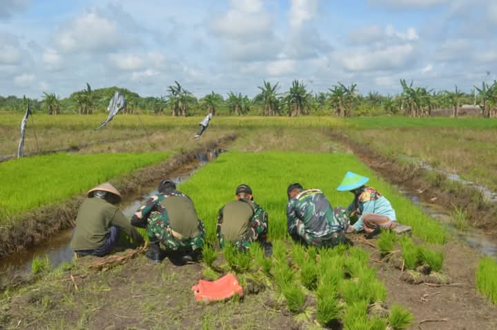 Sukamara– DOMAINRAKYAT.com// Disela kegiatan anggota Satgas TNI Manunggal Membangun Desa TMMD ke-123 Kodim 1014/Pbn juga membantu warga masyarakat dilokasi TMMD Menanam dan mencabut bibit Padi, di Desa Nibung, Kecamatan Jelai, Rabu (12/03/2025).