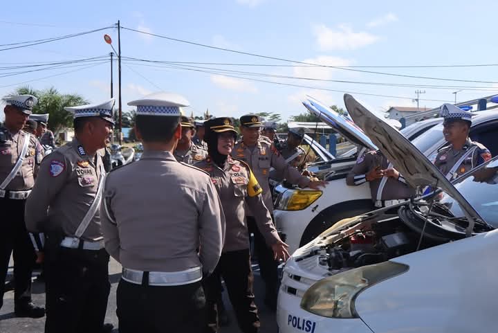 Katingan– DOMAINRAKYAT.com// Waka Polres Katingan Kompol Uni Subiyanti Didampingi Kabag Ops Polres Katingan,Kabag Log, Kasat Lantas dan Kasi Propam melaksanakan pengecekan kendaraan bermotor ( Ranmor ) Dinas Sat Lantas Polres Katingan.