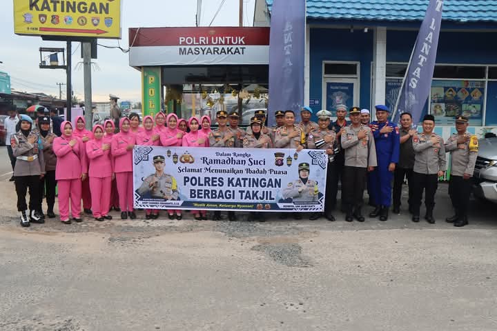 Kapolres beserta Bhayangkari dan Pejabat Utama Polres Katingan membagikan Ratusan paket takjil kepada para pengguna jalan dan masyarakat sekitar yang tengah menjalankan ibadah puasa.