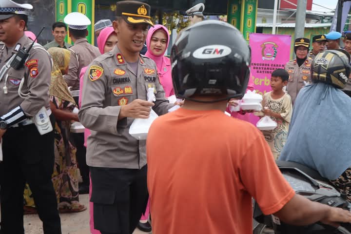 Kapolres beserta Bhayangkari dan Pejabat Utama Polres Katingan membagikan Ratusan paket takjil kepada para pengguna jalan dan masyarakat sekitar yang tengah menjalankan ibadah puasa.