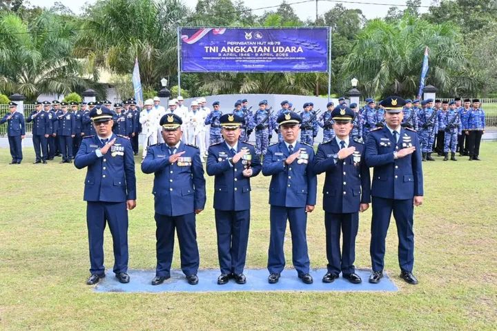 Pangkalan Bun– DOMAINRAKYAT.com// (TNI AU) Lanud Iskandar Iskandar menggelar upacara peringatan HUT ke-79 TNI Angkatan Udara secara Virtual bertempat di Lapangan Apel Mako Lanud Iskandar, Pangkalan Bun, Kotawaringin Barat, Rabu (9/4/2025).