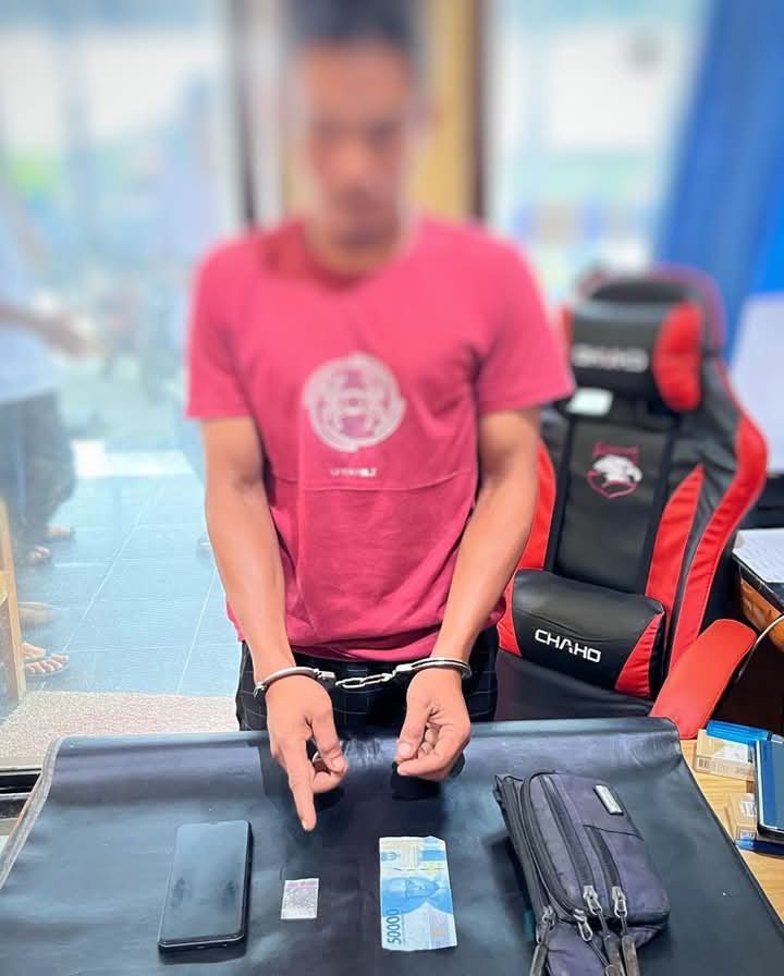 Hanya berselang beberapa jam sekira jam 18:25 WIB kembali dilakukan ungkap kasus oleh Polsek Tewang Sanggalag Garing dan Pulau Malan di Jalan Lintas Kasongan – Tumbang Samba Km. 50 RT.002 RW.001, Desa Tumbang Lawang, Kecamatan Pulau Malan yang berhasil mengamankan 1 (satu) orang laki – laki yang diduga pelaku tindak pidana Narkotika WS Alias J (42 Th). Polsek Tewang Sanggalang Garing dan Pulau Malan juga mengamankan beberapa barang yang diduga berkaitan dengan tindak pidana diantaranya 2 (dua) paket Narkotika dengan berat 1.43 (satu koma empat puluh tiga) gram, uang tunai senilai Rp. 400.000,00, korek api gas, bong alat hisap sabu, 1 buah handphone merk Samsung Galaxy A56 serta barang bukti lainnya.