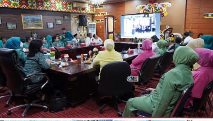 Murung Raya, Domainrakyat.com – Wakil Ketua Tim Penggerak Pemberdayaan dan Kesejahteraan Keluarga (TP-PKK) Kabupaten Murung Raya (Mura), Dina Maulidah Rahmanto dan jajaran anggota TP-PKK mengikuti peringatan Hari Anak Nasional (HAN) Ke – 41 dan Hari Keluarga Nasional (HARGANAS) Ke – 32 tahun 2025 secara virtual di aula kantor Bupati Mura, Rabu (16/7/2025).
