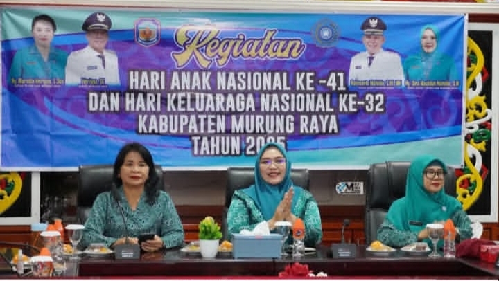 Murung Raya, Domainrakyat.com – Wakil Ketua Tim Penggerak Pemberdayaan dan Kesejahteraan Keluarga (TP-PKK) Kabupaten Murung Raya (Mura), Dina Maulidah Rahmanto dan jajaran anggota TP-PKK mengikuti peringatan Hari Anak Nasional (HAN) Ke – 41 dan Hari Keluarga Nasional (HARGANAS) Ke – 32 tahun 2025 secara virtual di aula kantor Bupati Mura, Rabu (16/7/2025).