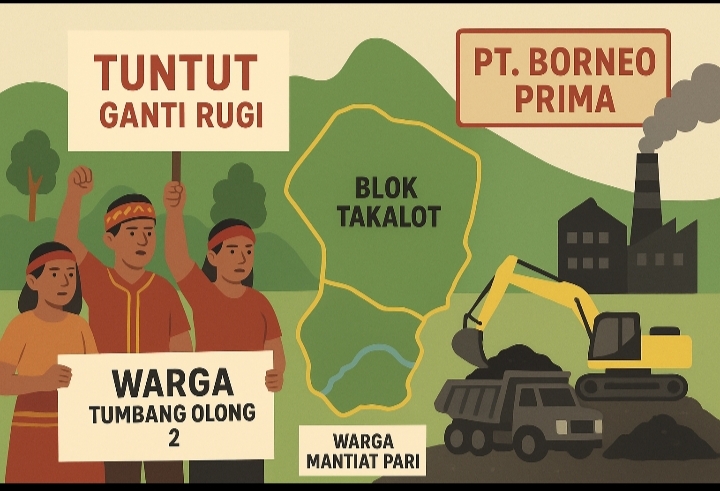 Konflik agraria kembali mencuat di wilayah pedalaman Kabupaten Murung Raya. Warga Desa Tumbang Olong 2 Kecamatan Uut Murung dan Desa Mantiat Pari, Kecamatan Tanah Siang, secara tegas menuntut ganti rugi atas lahan Blok Takalot yang disebut telah dikuasai sepihak oleh PT. Borneo Prima, perusahaan tambang batu bara yang beroperasi di daerah tersebut.