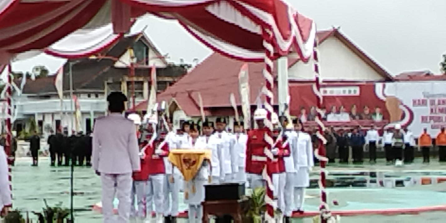 Upacara peringatan detik-detik proklamasi Hari Ulang Tahun (HUT) ke-80 Kemerdekaan Republik Indonesia berlangsung khidmat di Lapangan Kantor Bupati Murung Raya, Puruk Cahu, Kabupaten Murung Raya, Minggu (17/8/2025).