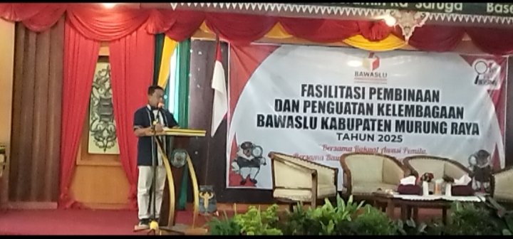 Badan Pengawas Pemilu (Bawaslu) Kabupaten Murung Raya menggelar kegiatan fasilitasi pembinaan dan penguatan kelembagaan, Sabtu (13/9). Acara berlangsung di Gedung DAD Jalan Cilik Riwut, Puruk Cahu, dan dihadiri berbagai unsur penting.