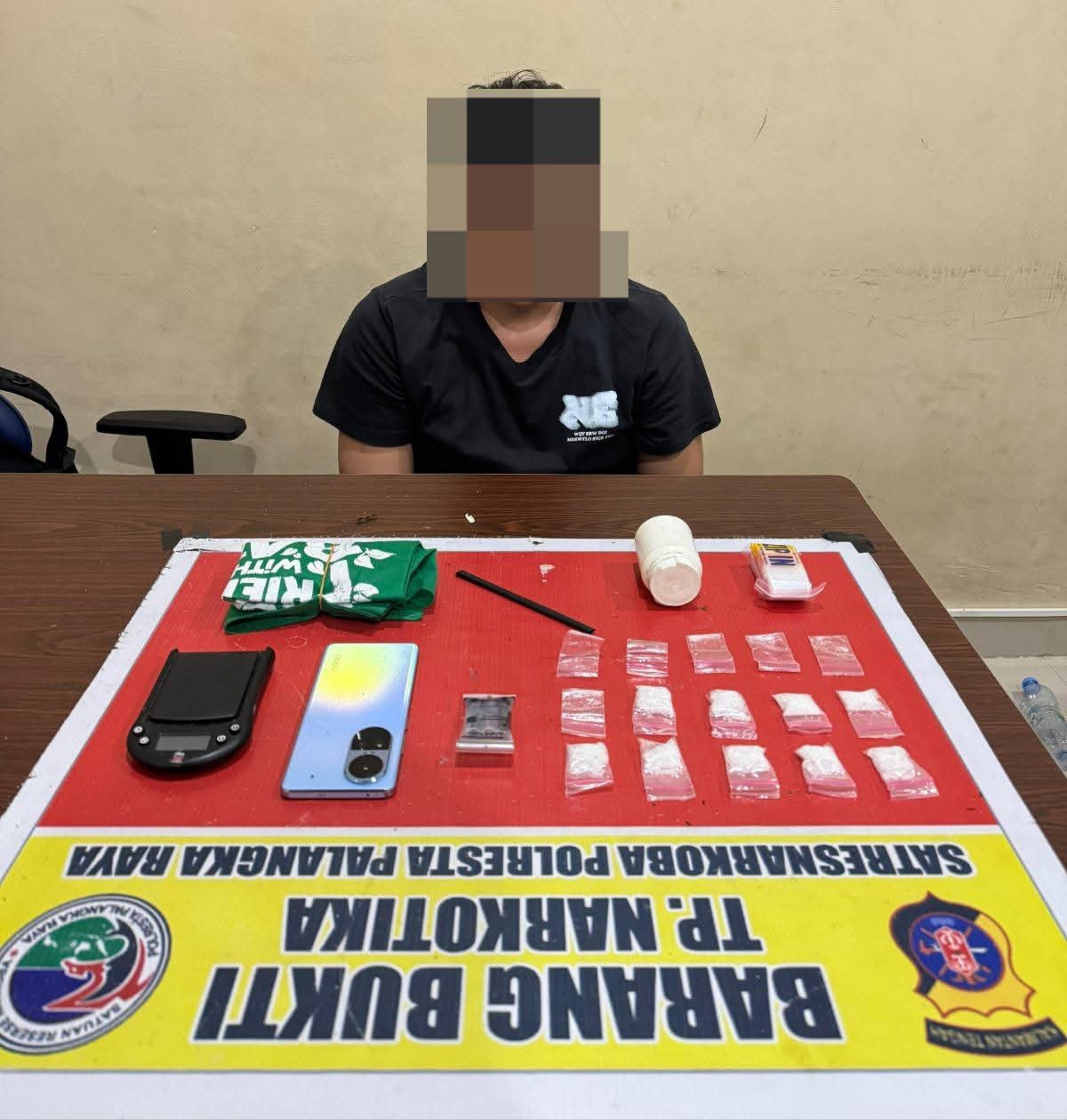 Kasatresnarkoba Polresta Palangka Raya AKP Agung Wijaya Kusuma menjelaskan, dari hasil olah TKP, ditemukan sejumlah barang bukti lainnya berupa timbangan digital, sendok sabu, plastik klip, botol permen, tas warna hijau, serta satu unit handphone Oppo Reno 10 yang digunakan pelaku untuk transaksi.