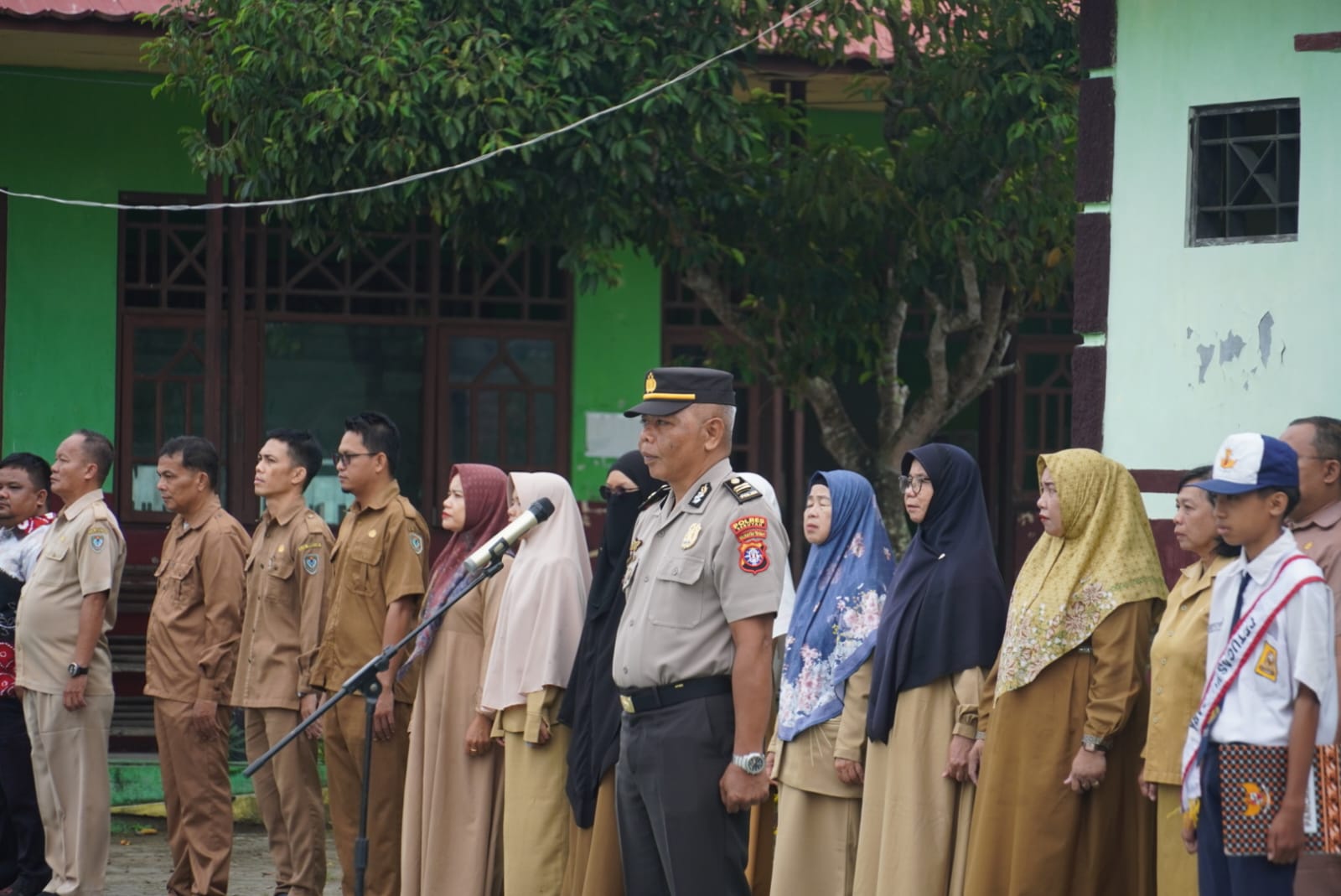 2. IPDA DWI PRIYONO, S.H. (KBO Sat Narkoba) yang memimpin upacara di SD Negeri 3 Kuala Pembuang II.