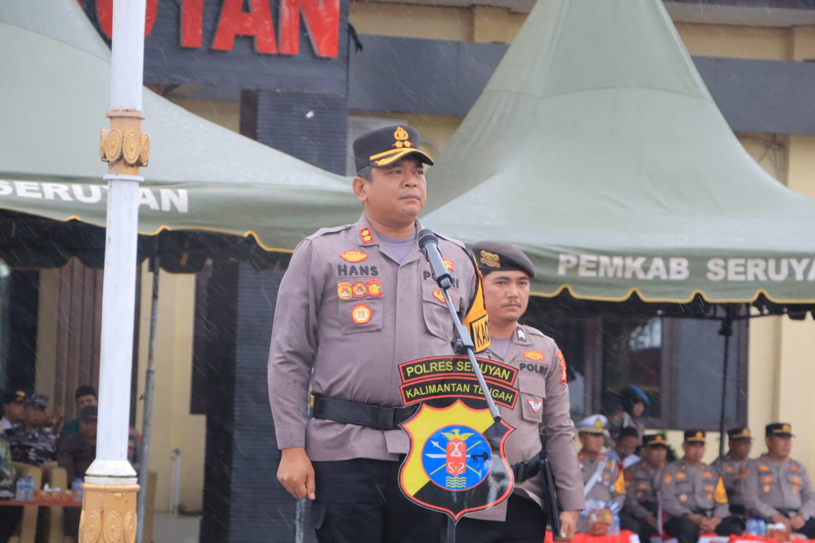 Kapolres Seruyan, AKBP Dr. HAN’S ITTA P., S.I.K., M.M., M.I.K., bertindak selaku Inspektur Upacara. Apel ini dihadiri oleh unsur Forkopimda dan tokoh masyarakat, antara lain Bupati Seruyan Ahmad Selanorwanda, Pj. Sekda Dr. Bahrun Abbas, Pabung Seruyan Mayor Inf Joko Susilo, Kasi Pidsus Kejari Raj Boby Caesar Fardenias, Dan Pos AL Kuala Pembuang Kapten Laut (P) Wahyudi, serta perwakilan dari BPBD, Disperindag, FKUB, dan Senkom.