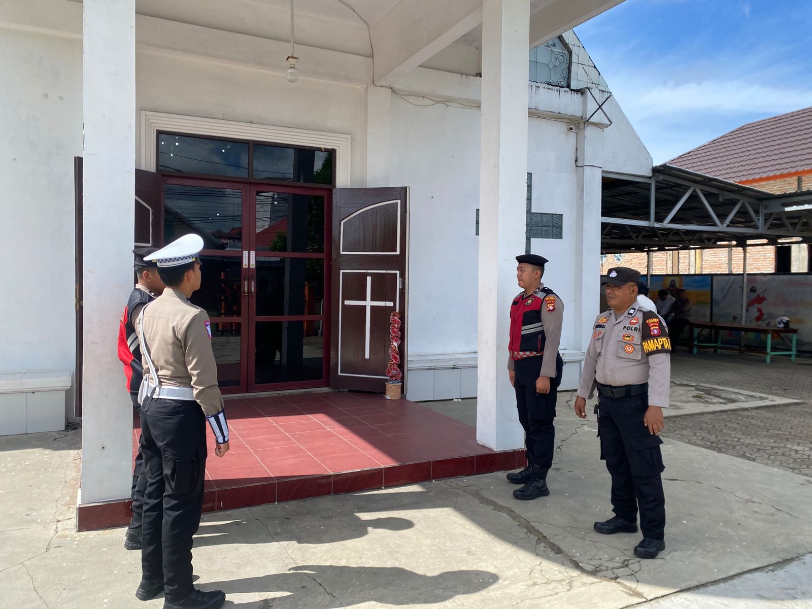 Kuala Pembuang,- DOMAINRAKYAT.com// Dalam rangka memastikan keamanan dan ketertiban masyarakat, Pamapta I Polres Seruyan bersama piket satfung melaksanakan monitoring kegiatan masyarakat pada perayaan Hari Natal Tahun 2025 di Gereja Immanuel Kuala Pembuang, Jumat (26/12/2025) pagi.