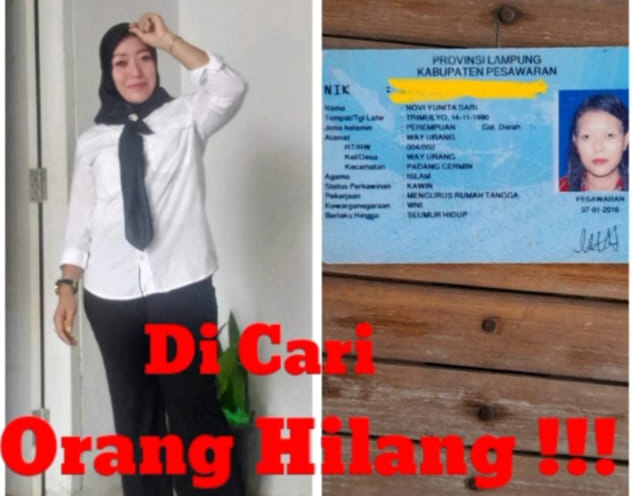 Pesawaran, domainrakyat.com – Telah hilang beberapa hari yang lalu seorang ibu rumah tangga yang berdomisili Di desa wayurang kecamatan padang cermin kabupaten pesawaran 22-1-2025 Dengan Nama.