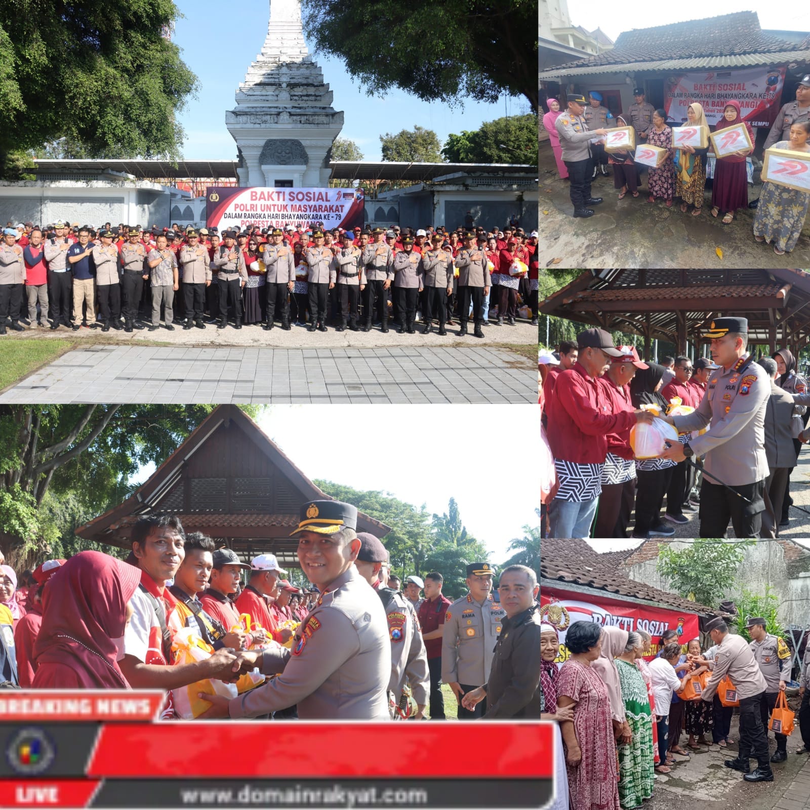 Menyambut Hari Bhayangkara ke-79, Kepolisian Resor Kota (Polresta) Banyuwangi menggelar kegiatan bakti sosial secara serentak dengan menyalurkan 1.500 paket sembako kepada masyarakat, Jumat (27/6/2025).