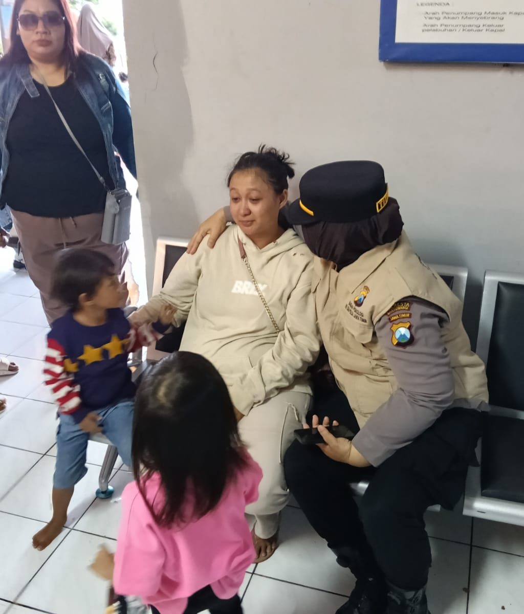 Team Psikologi dari Polresta Banyuwangi diterjunkan untuk mendampingi korban selamat tragedi tenggelamnya KMP Tunu Pratama Jaya di Posko Evakuasi Pelabuhan ASDP Ketapang, Banyuwangi, Jawa Timur, Jumat (04/07/25).