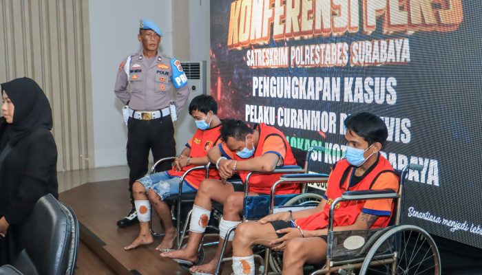 Dalam penangkapan, Ketiga bandit jalanan itu sempat diberi tindakan tegas terukur dengan ditembak kakinya oleh anggota Satreskrim Polrestabes Surabaya.